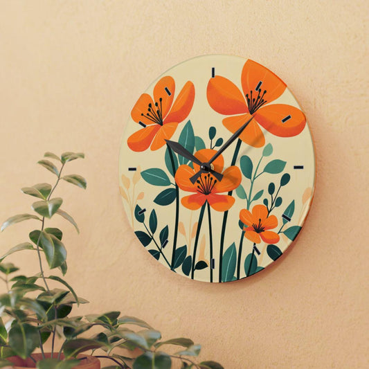 Personalized Floral Wall Clock, Orange Flower Clock, Bold Flower Wall Clock, Abstract Art Decor, Kitchen Clock, Floral Art Wall Clock Gift f