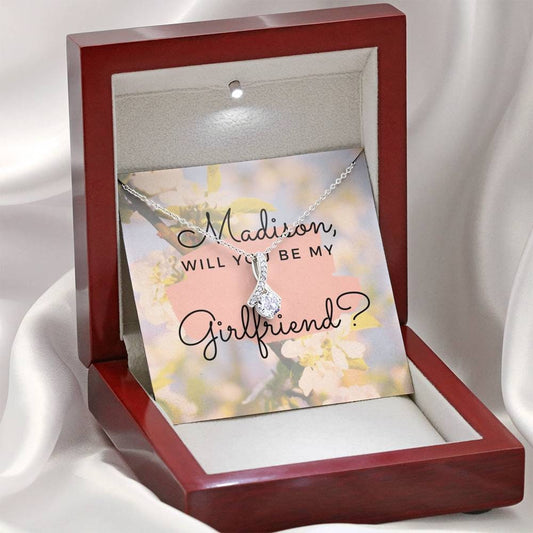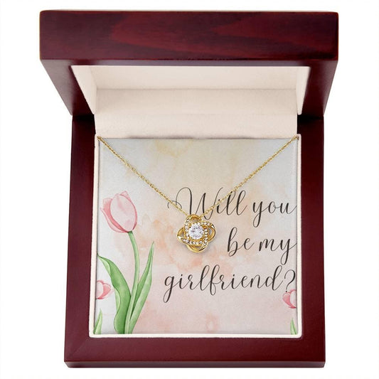 Will You Be My Girlfriend? Necklace with Romantic Message Card, Funny Girlfriend Proposal, Elegant Love Knot Jewelry