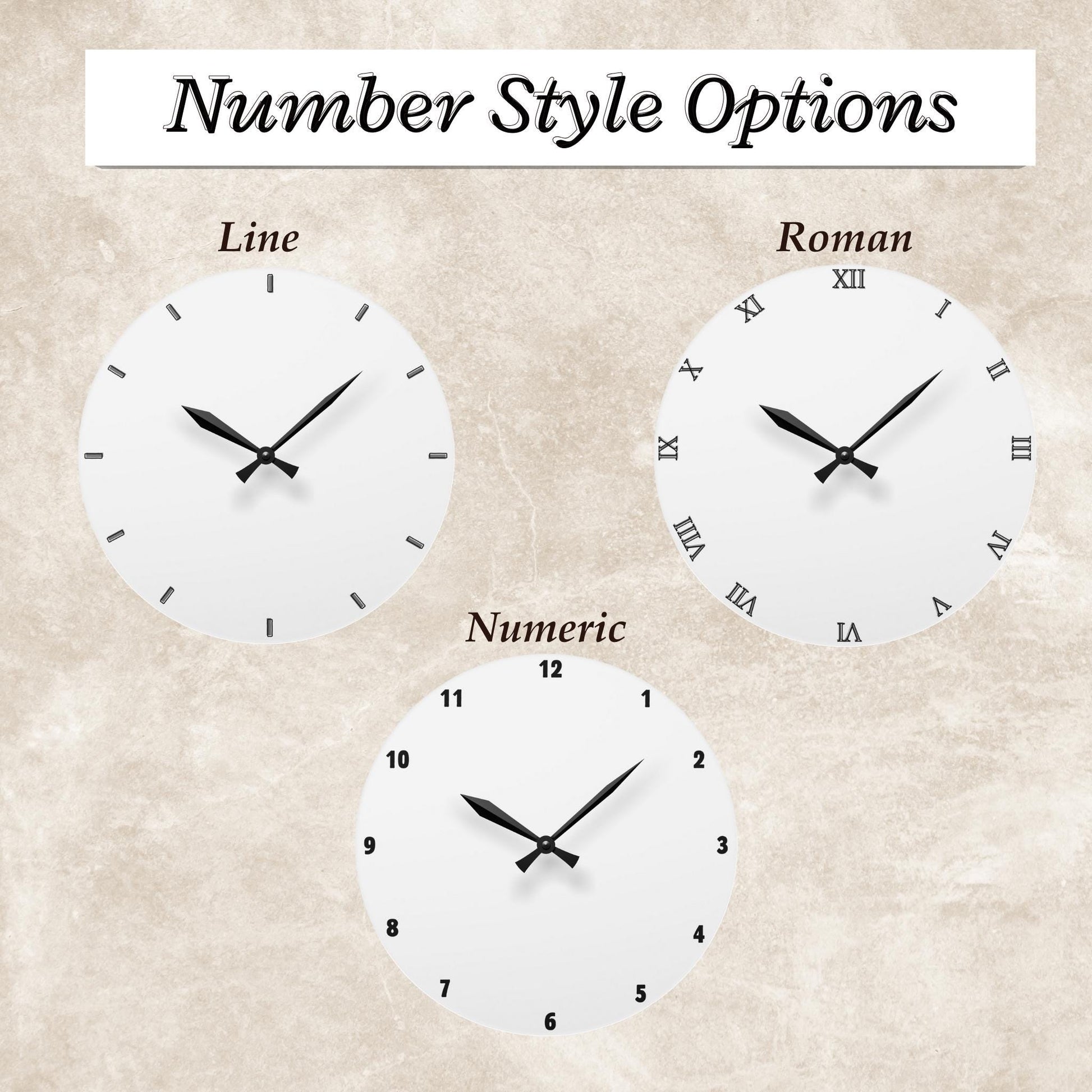• Choose between 3 clock's number style options (roman. numeric or line).