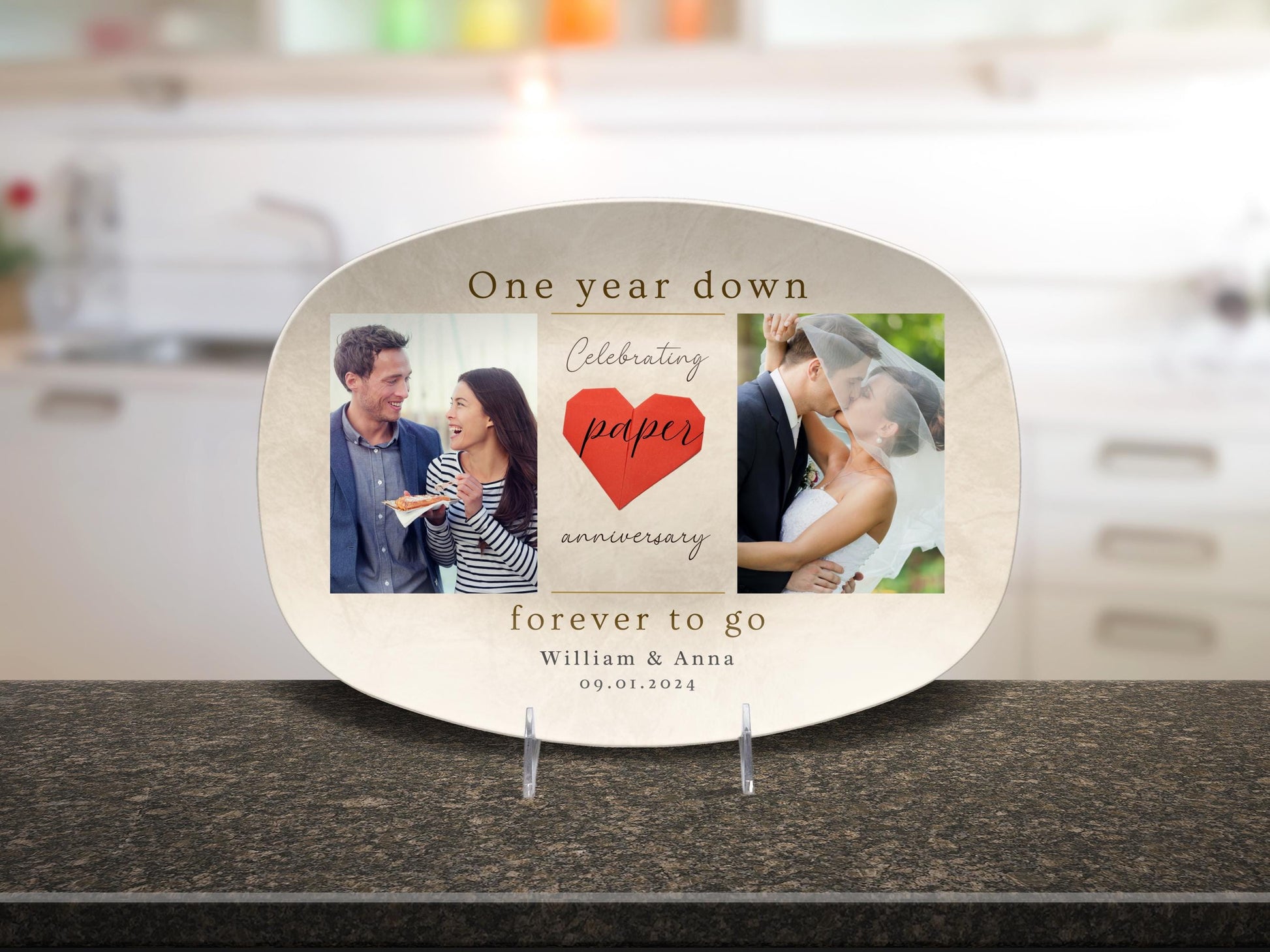 Personalized 1st Wedding Anniversary Platter, Paper Wedding Anniversary Plate, Custom First Anniversary Gift for Husband Wife