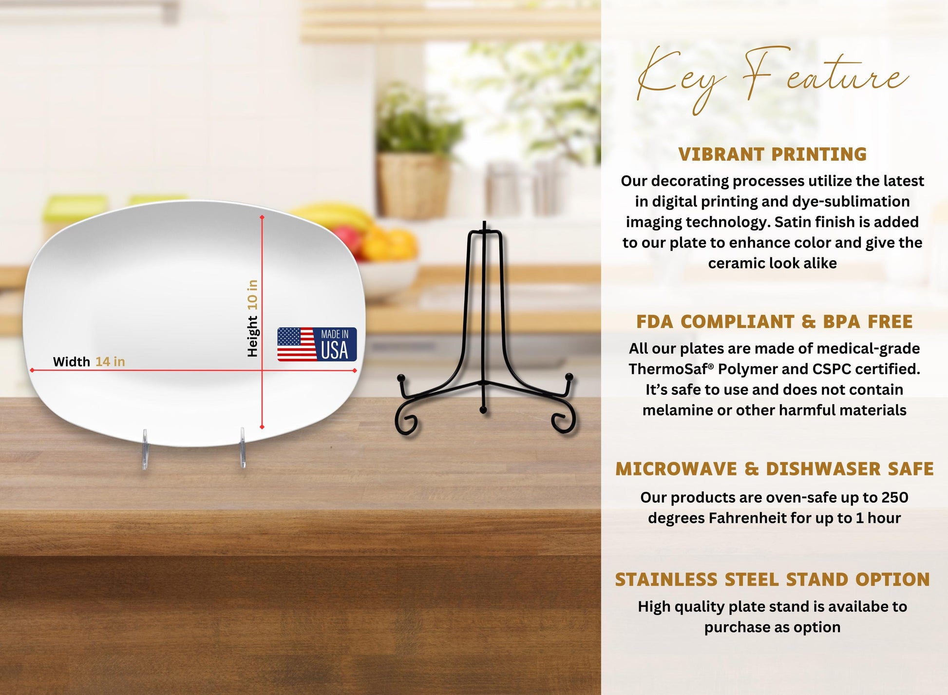 Looking for a personalized and memorable gift for your wedding anniversary that you can kept and cherished for many years to come? Look no further! Show your love to your parents, husband or wife with this Customized Anniversary Wall Platter. This personalized platter captures the celeration of long lasting marriage between couple. It is made of high quality revolutionary ThermoSāf® polymer and its 10" x 14" size exhibit modern and elegant style. Whether you're refreshing your kitchen space or looking for a memorable gift for any occassion such as Anniversary, House Warming, Christmas, New Year, Birthday, Valentine's Day, Mother's Day, Thanksgiving and etc., this platter elegant design and functional appeal make it a must-have piece to any home or office.