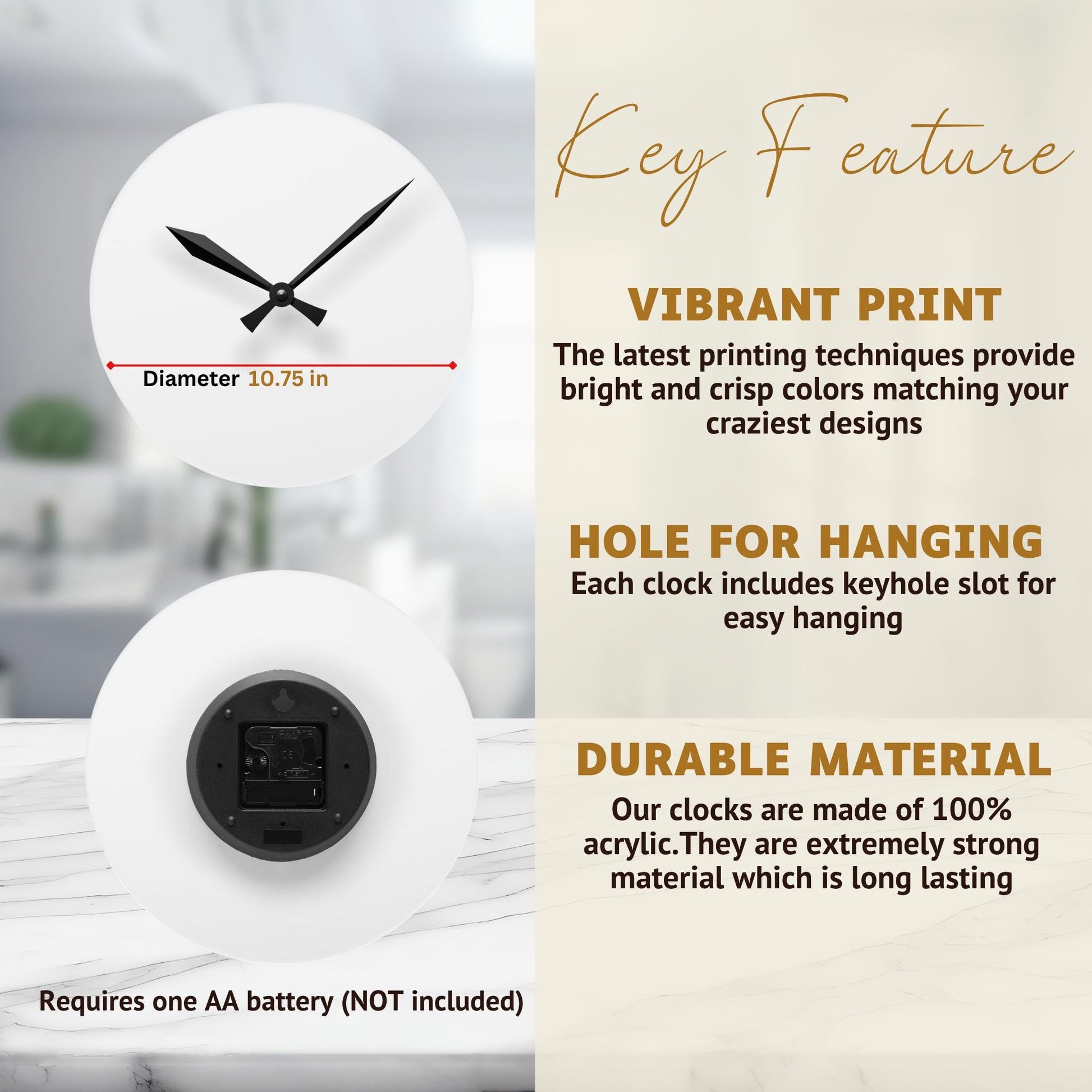Each personalize anniversary clock has a keyhole at the back for easy hanging on a wall. They're made from an acrylic material that looks like glass but is more durable and sturdy.