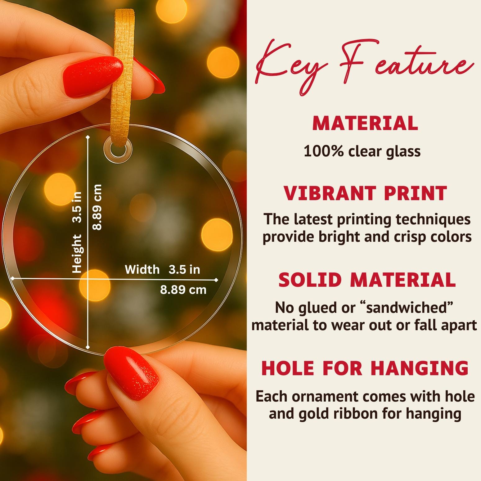 Looking for a one of a kind 40th anniversary gift? Look no further! Celebrate the lasting love and happiness of marriage with our stunning personalized anniversary glass ornaments. Our glass ornaments are meticulously crafted and printed using advanced UV printing technology, ensuring precise and intricate designs that last. Perfect for commemorating a special occasion, celebrating a loved one, or simply adding a touch of elegance to your holiday decor, these ornaments offer a sophisticated way to make your Christmas tree truly unique. Whether marking your wedding day or your first anniversary, these ornaments offer a heartfelt symbol of love and gratitude. Our custom glass ornament is a stunning tribute to your ruby anniversary—featuring your names, date. This elegant piece adds timeless beauty to your tree or display and becomes a treasured memento of your milestone.