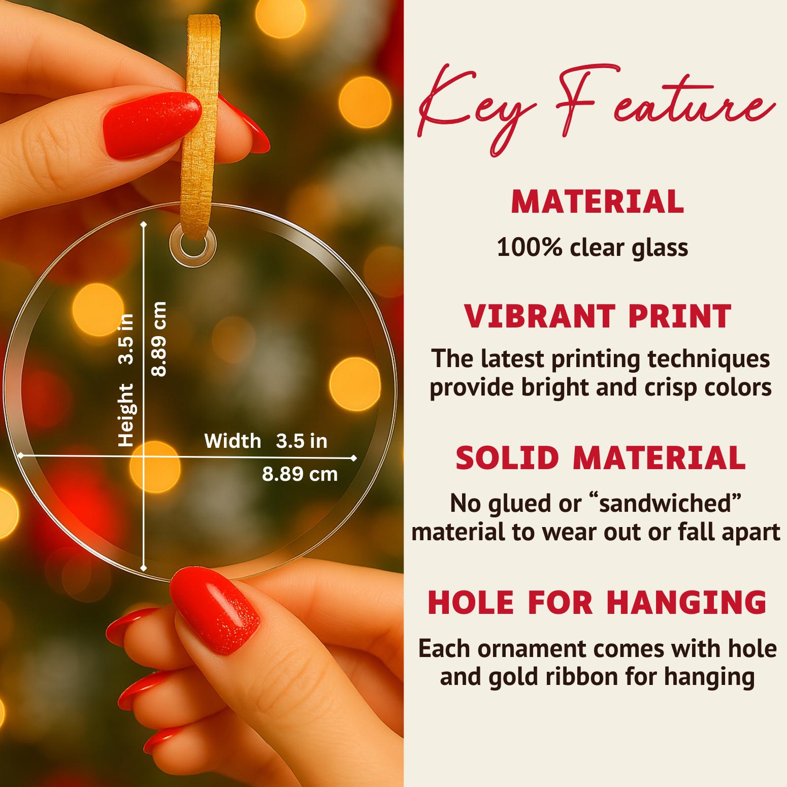 Our glass ornaments are meticulously crafted and printed using advanced UV printing technology, ensuring precise and intricate designs that last. Perfect for commemorating a special occasion, celebrating a loved one, or simply adding a touch of elegance to your holiday decor, these ornaments offer a sophisticated way to make your Christmas tree truly unique. Whether marking your wedding day or your 4th anniversary, these ornaments offer a heartfelt symbol of love and gratitude. Each piece comes with an elegant hanging string and is beautifully presented in a charming box, making it a treasured keepsake to honor the joyful journey of marriage.