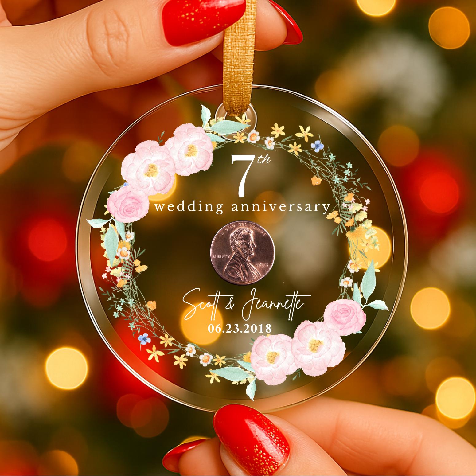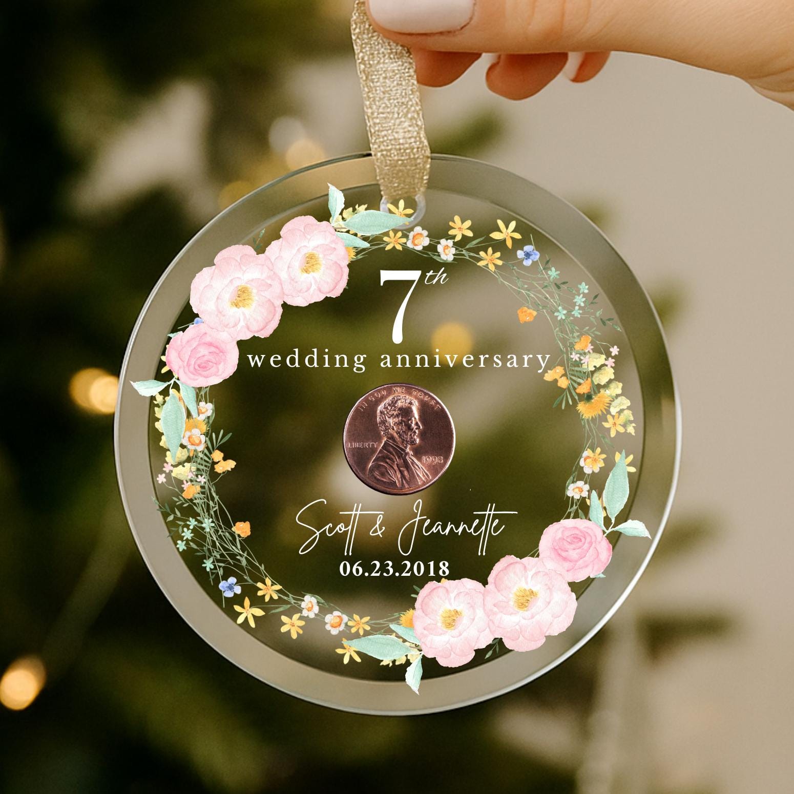 Personalized 7th Wedding Anniversary Ornament, 7th Anniversary Gifts, Seven Years Wedding Gift, Copper Anniversary Gift For Husband Wife, W
